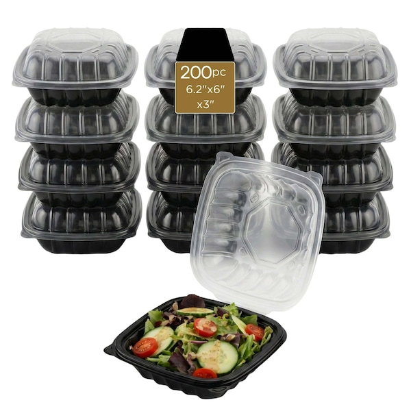 Food Storage Container, Hinged, Vented Lid, Plastic, 6.2" x 6", 200PK