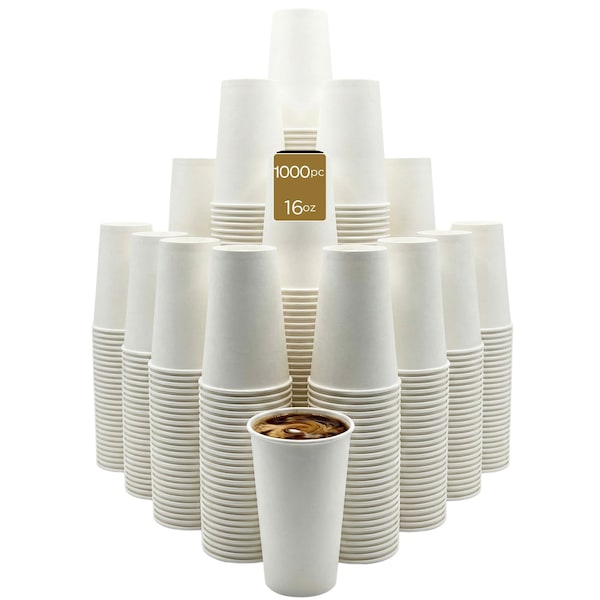 Paper Cup, Single Wall, 90mm, Hot and Cold Beverages, White, 16oz, 1000PK