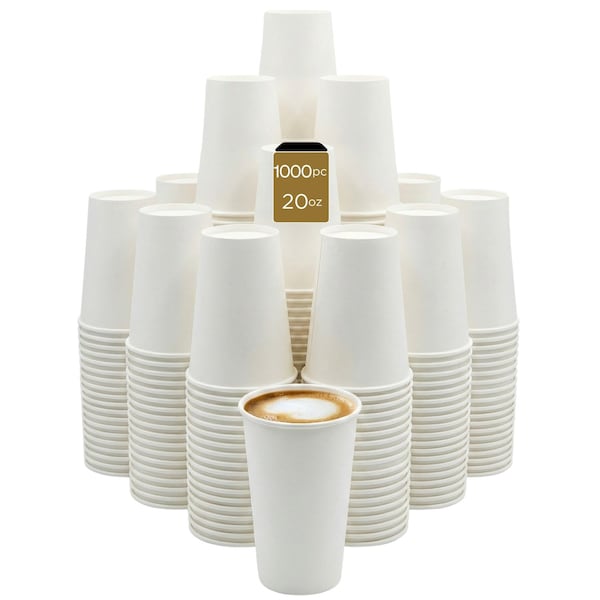 Paper Cup, Single Wall, 90mm, Hot and Cold Beverages, White, 20oz, 1000PK