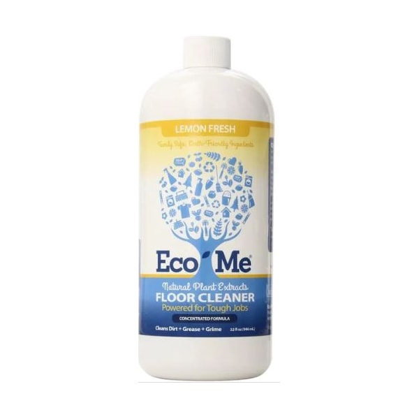 Eco Me Floor Cleaner, Lemon Fresh 32 oz. breaks down dirt, food, grease and grime with its plant-based formula. It contains natural plant extracts and essential botanicals with no Sulfates, Phthalates, Ammonia or Bleachthat that leave floors feeling clean and residue free. Perfect for tile, stone, sealed wood, vinyl, linoleum, laminate and other sealed surfaces. It deep cleans, shines and protects using no harsh chemicals or leaving any toxins left behind. This Floor Cleaner has no harsh fumes and is free from synthetic fragrance, dyes or phosphates which provides worry-free cleaning for you, your family and your pets. The Eco Me Multi-Surface Floor Cleaner is a great addition to any home. This Family safe product leads to a healthier and more sustainable planet. Eco-Me products are manufactured in the US and are natural, using ingredients that are tested for human and pet safety and meet the highest standards set forth by Green seal, the natural products association and rated No.1 by whole foods market's eco scale. Born out of the need to remove dangerous chemicals from our homes and environment and the concern that the toxins emitted from every day products has encouraged the rapid increase of disease in our society, you can trust Eco-Me to bring you the safest and most effective cleaning products.