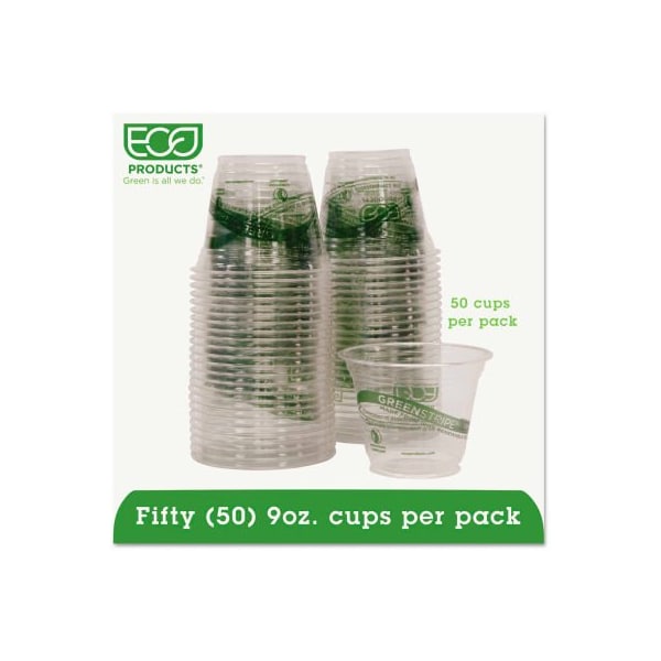 Eco-products greenstripe renewable resource cold drink cups, 9 oz., clear, 50/pack an excellent alternative, choose ingeo biopolymer cups. They're made entirely of a plant-based polymer. For cold beverages. Cup type: cold; capacity: 9 oz; material(s): pla; color(s): clear. this product arrives to most customers in 2-3 business days.
