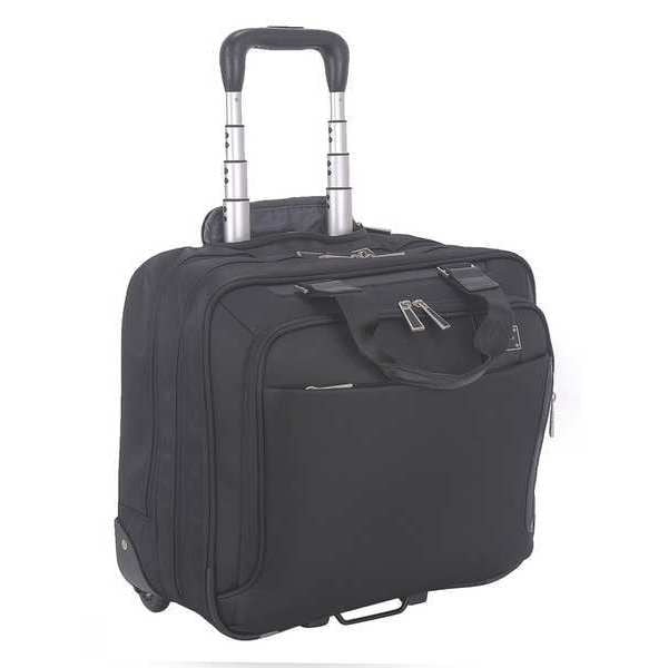 Rolling Laptop Case, Fits Laptop Up to 15.6 in, Color Black, Material Nylon, Length 16 3/4 in, Width 13 in, Depth 7 in, Includes Additional Padded Accessory Pocket, Adjustable Seat Belt Strap, Key Fob, Cell Phone Pocket, Pen/Pencil Holders