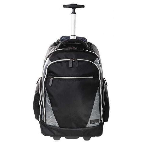 Rolling Laptop Backpack, Fits Up to 17.3 in Laptop, Color Black, Platinum, Material Nylon, Length 14 3/4 in, Width 22 1/2 in, Depth 7 1/5 in, Includes Additional Pocket, Books and Files, Business Card Holder, Cell Phone Pocket, Ergonomic Shoulder Strap, Exterior Side Pocket, Gaming Device, Key Fob, Pen/Pencil Holders, Portable Printer, Retractable Water Bottle Holder, Second Large Compartment, Zippered Mesh Pocket