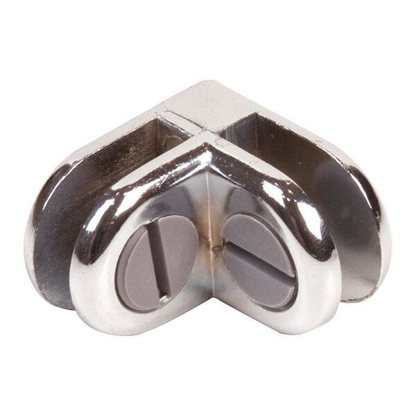 Glass Binning Connector 2 Way, Silver, Chrome, Plastic, Overall Depth 1 in, Overall Height 1 in, Overall Width 1/2 in, Tightening Screws, 2-Way, Package Quantity 200