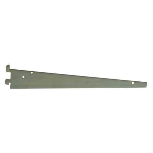 Shelving Bracket, Steel, Zinc-Plated, Silver, Overall Depth 12 in, Overall Height 1 1/2 in, Overall Width 1/2 in, Slot Length 1 in, Slot Spacing 2 in, Whole Unit Load Capacity 35 lb, Gauge 16 ga, Duty Rating Heavy Duty, Slotted Standard Format Single, For Display Type Single Slotted Standards, Mounting Type Hanging, Product Type Attachment and Shelf Rest Bracket, Package Quantity 25