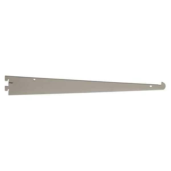 Shelving Bracket, Steel, Chrome, Silver, Overall Depth 14 in, Overall Height 3 in, Overall Width 1/8 in, Slot Length 1/2 in, Slot Spacing 1 in, Whole Unit Load Capacity 40 lb, Gauge 16 ga, Duty Rating Heavy Duty, Slotted Standard Format Single, For Display Type Single Slotted Standards, Mounting Type Hanging, Product Type Tap-In Fixed Shelf Bracket, Package Quantity 25