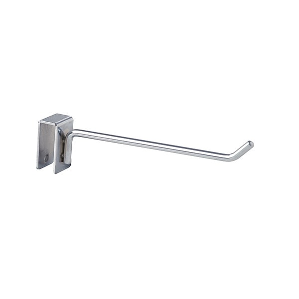 Hook, Steel, Chrome, Silver, Load Capacity 10 lb, Overall Depth 6 in, Overall Height 1/2 in, Overall Width 1/2 in, Gauge 16 ga, For Display Type Slatwall, For Tube Shape Rectangular, Shelf Adjustment Type Fixed, Package Quantity 96