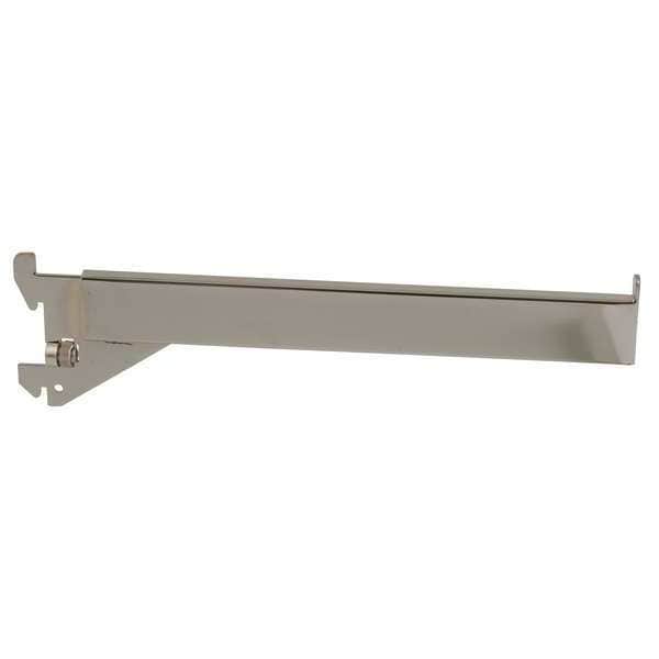 Straight Arm, Steel, Chrome, Silver, Overall Depth 12 in, Overall Height 3 in, Overall Width 1/4 in, Slot Length 1 in, Slot Spacing 2 in, Whole Unit Load Capacity 35 lb, Gauge 16 ga, Duty Rating Heavy Duty, Slotted Standard Format Single, For Display Type Heavy-Duty 1/8 in Thick Recessed Standards, Mounting Type Hanging, Product Type Rectangular Faceout, Package Quantity 24