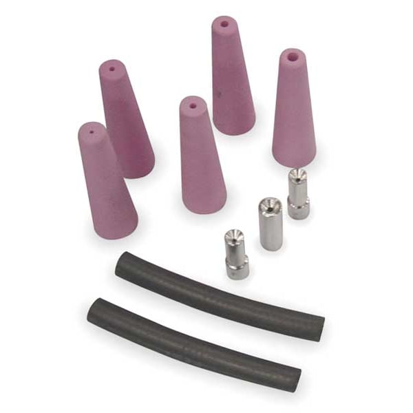 Abrasive Blast Restrictor Kit, Product Type Nozzle Kit, Feed Type Pressure, Material Ceramic, Shape Tapered, Inner Diameter 1/8 in, 3/16 in, 1/4 in, Tip Outer Diameter 5/8 in, Base Outer Diameter 1 1/8 in, Overall Length 3 3/4 in, Air Flow - Maximum 80 cfm, Includes (2) Control Box Hoses, (3) Restrictors, Compatible with Manufacturer Model Number 101826G-A, Compatible with Grainger Part Number 6YY24