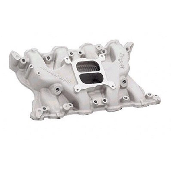The Performer Intake Manifold is manufactured from aluminum and given a natural finish. They feature a patented runner design and have a non-EGR Exhaust Gas Recirculation style. This boosts the torque and horsepower over a wide RPM range from off-idle to 5 500 RPM. This Performer Series intake is for 4-barrel carburetors and it has a square bore flange. They accept late-model choke water neck alternator and air conditioning brackets and have provisions for oil filler tube. Features -Dual plane low-rise intake manifold -Features a 180 degree firing order -Improves throttle response over stock intake -Use of an embossed intake gasket is recommended with the intake to ensure proper manifold