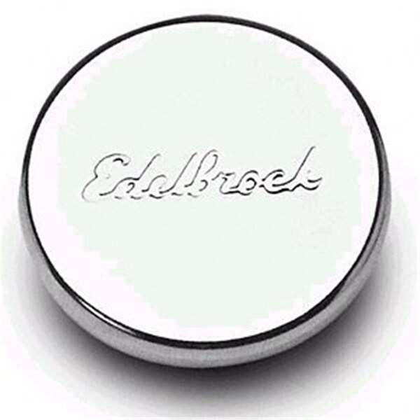 The Oil Fill Hole Plugs are designed to plug the oil hole on The Edelbrock Signature Series valve covers or any diameter fill hole. These oil fill hole plugs have recessed Edelbrock script. Features Oil cap attachment is push-in Oil cap is made of steel Top style of the oil cap is plain Has the recessed Edelbrock script Chrome finish for a great look
