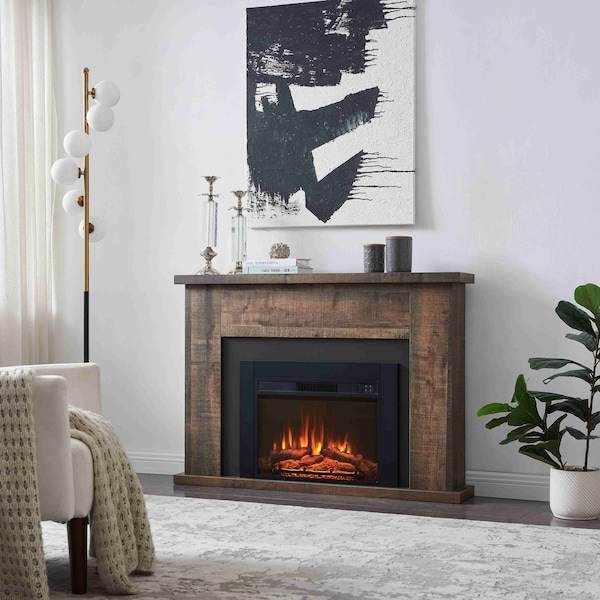 28'' Ventless Electric Fireplace Insert, Remote Control, Adjustable Led Flame Brightness, 750/1500W