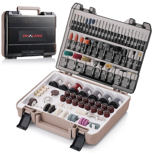 This 420PCS Rotary Tool Accessories Kit is a must-have for DIY enthusiasts, crafters, and home improvement hobbyists. This extensive kit includes a variety of high-quality accessories compatible with most rotary tools, making it perfect for tackling cutting, sanding, grinding, polishing, drilling, carving, and more. Whether you are a beginner or an experienced user, this all-in-one accessory set provides everything you need. All accessories are neatly organized in a durable, waterproof storage case for easy access and portability.