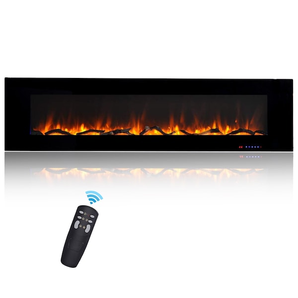 72-in W Black Wall mount LED Flat wall Electric Fireplace with Remote Control Included