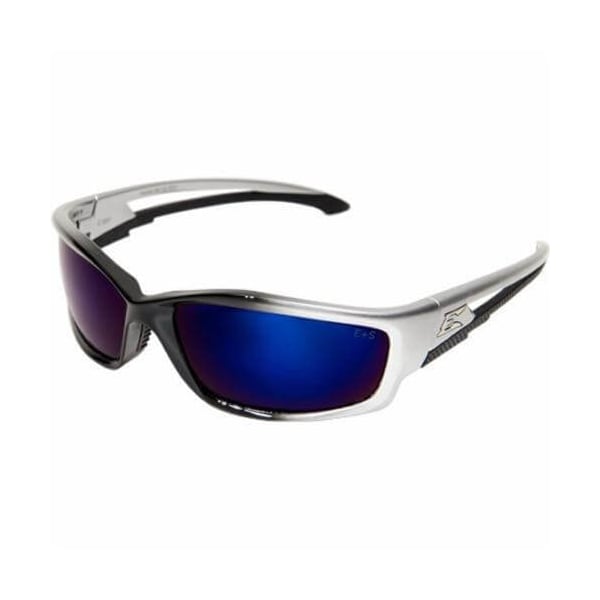 Edge protective glasses non-Polarized, series: kazbek, universal size, anti-scratch lens coating, blue mirror lens, full Framed/wrap around frame, black/Silver frame, nylon frame, polycarbonate lens, 99.9 % UV protection, straight back temple, specifications met: ANSI Z87.1.