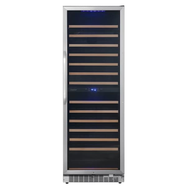Product can store 141 wine bottles The temperature range of this unit goes from 40 to 65DegF, making it ideal for all types of wine Two temperature zones let you chill reds and whites each at their own particular temperature setting Fanforced internal circulation prevents uneven temperature distribution as is often produced by platecooled units, ensuring all of your wine reaches your desired temperature and does so quickly Fanforced front ventilation allows this unit to be installed flush with surrounding cabinetry in an undercounter installation or optionally installed as free standing Touch controls and a digital display make choosing the appropriate setting a breeze Metal shelves with wood fronts elegantly display your wines Interior lighting to help display your wines Choose a right or leftswinging door, opening up for options for places where this can be installed An integrated safety lock prevents tampering with your regulator and thermostat