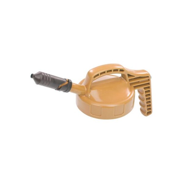 Oil safe mini spout lid, tan/beige the oil safe mini spout lid is ideal for lubrication jobs where equipment filler holes are small. Outlet diameter approximately 7mm / 9/32". Spout is approximately 4.75 inches.