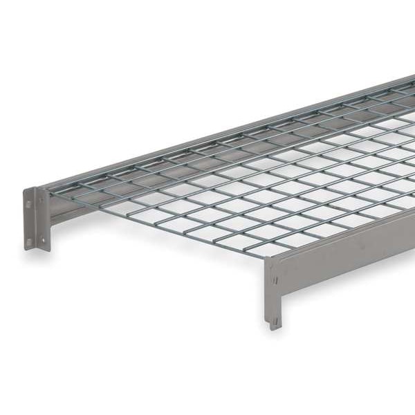 Shelf, Color Silver, Steel Frame Material, Overall Depth 24 in, Overall Height 2 3/4 in, Overall Width 96 in, Steel Decking Material, Powder Coated Frame Finish, Includes (2) Beams, Includes Decking Yes, Load Capacity 1,500 lb, 16 ga, NSF Standards