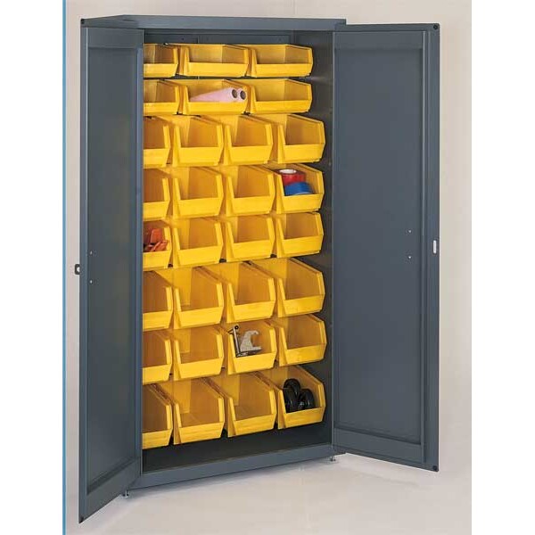 Bin Cabinet, Bin Color Yellow, Bin Depth (24) 14-3/4 in, (6) 10-7/8 in, Bin Height (24) 7 in, (6) 5 in, Bin Material Polypropylene, Bin Width (24) 8-1/4 in, (6) 11 in