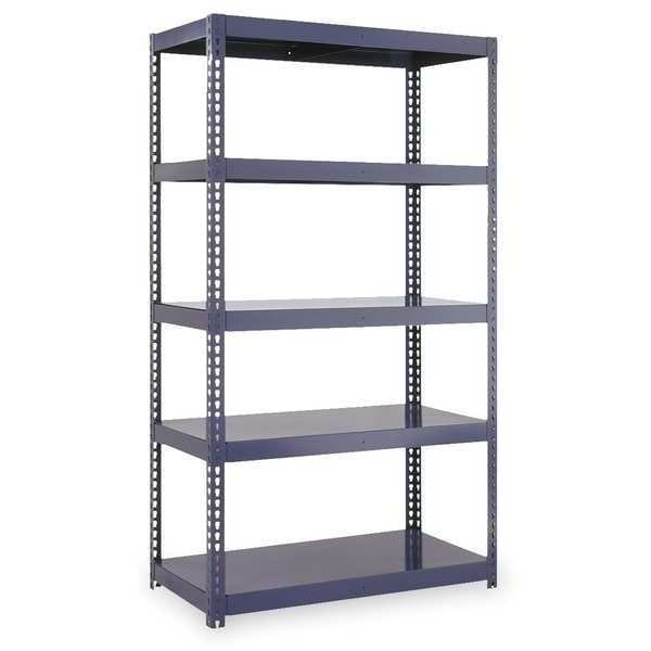 Boltless Shelving, Low Profile, Overall Depth 24 in, Overall Height 96 in, Overall Width 48 in, Shelf Gauge 16 ga, Shelf Adjustment Increments 1 1/2 in, Steel, Steel, Steel, (4) Posts, (5) Center Supports, Includes Decking Yes, Includes Mounting Hardware No, 4,000 lb, Whole Unit Load Capacity 20,000 lb, Standalone, Post Gauge 14 ga, Number of Shelves 5, Boltless, Mounting Hardware Required No, Powder Coated, Extra-Heavy-Duty, Gray