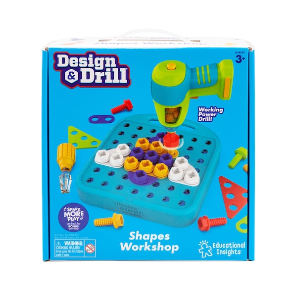 Spark More Creativity! Lets try something new! Educational Insights toys and games provide opportunities for self-expression, creativity, and imagination, helping kids identify new interests, appreciate their own strengths, recognize and overcome challenges, and build their self-confidence. Construction meets creativity with this STEM learning set! Preschoolers use a kid friendly power drill, decorative design plates, and matching bolts to create colorful works of art. Includes activity board with handle, drill, screwdriver, 24 plates, 44 bolts, and activity guide with playful patterns to follow. Manipulating the cards, drill, plates, and bolts builds the hand-strength, hand-eye-coordination and fine motor skills kids need to hold a fork and button their shirts.
