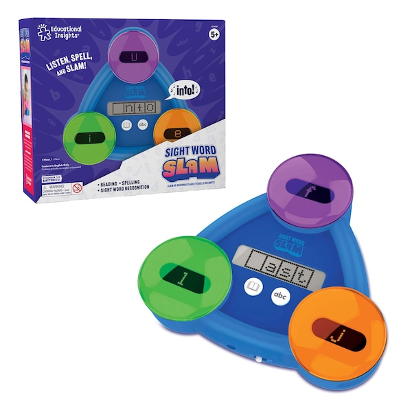 Slam your way to sight word success! Two game modes help kids spot, spell, and read sight words as they listen to the word and then slam the missing letter or matching word. Features four LCD windows, three pressable buttons, and fun sound effects.