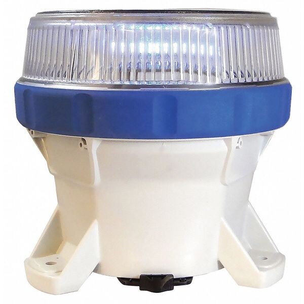 Solar Warning Light, Color Blue, Lamp Type LED, Lens Design Fixed, Lens Material Polycarbonate, Housing Material Polycarbonate, Mounting Surface, Operating Temp. -45 Degrees to 124 Degrees F, Rating IP68, Width 6.93 In., Depth 6.93 In., Height 6.65 In.