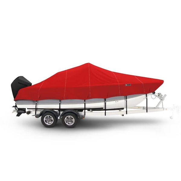 Boat Cover BAY BOAT Rounded Bow, Low or No Bow Rails Inboard Fits 12ft 6in L up to 70in W Red