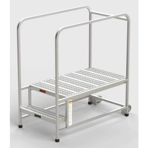 Aluminum Mobile Work Platform, 2 Steps, Handrails, 42"D Platform, Serrated Tread