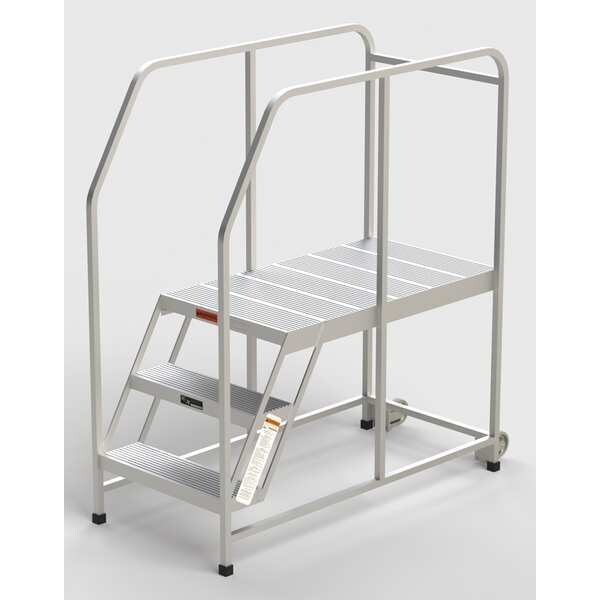 Aluminum Mobile Work Platform, 3 Steps, Handrails, 42"D Platform, Solid Ribbed Tread