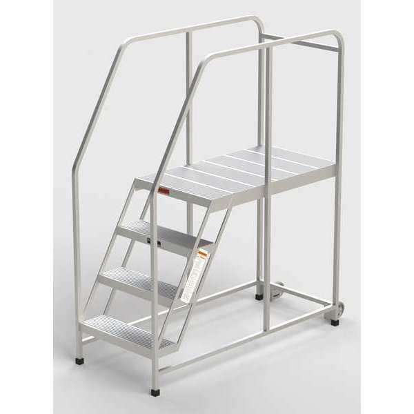 Aluminum Mobile Work Platform, 4 Steps, Handrails, 42"D Platform, Solid Ribbed Tread