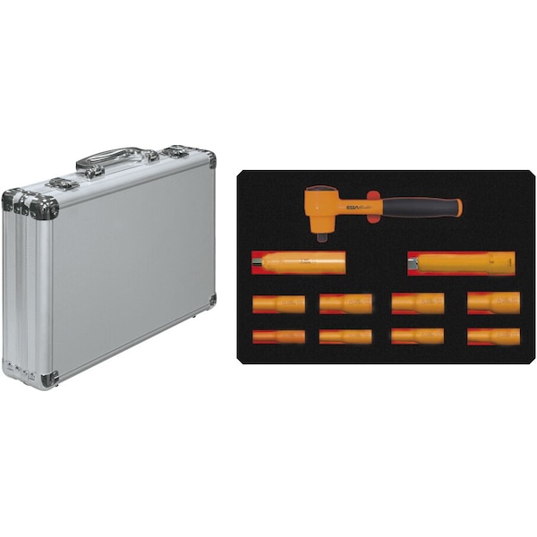 SET OF 11 PCS - SOCKET WRENCHES 3/8" (3/8" - 13/16" LONG SERIE) 1000 V (12 EDGES)