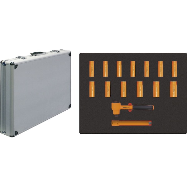 SET OF 15 SOCKET WRENCHES 1/2" (10-27 MM LONG SERIE) 1000 V (12 EDGES)