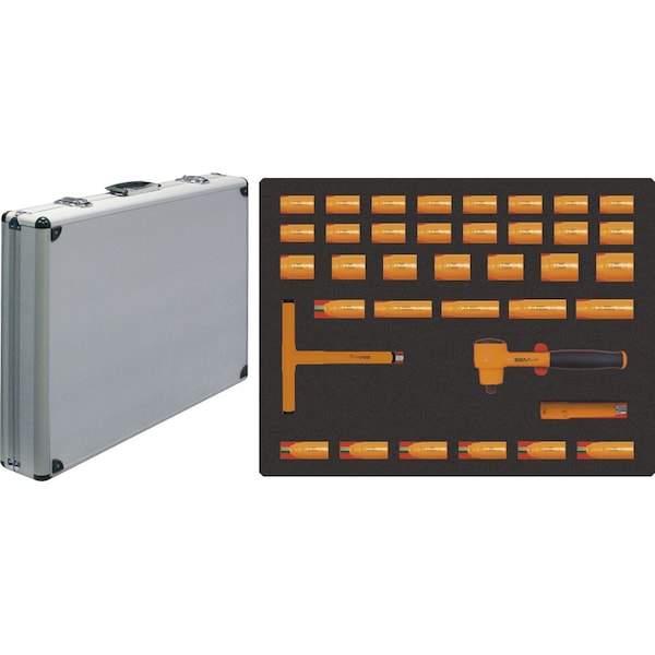 SET OF 37 SOCKET WRENCHES 1/2" (8-32 MM AND 10-19 MM LONG SERIE) 1000 V (12 EDGES)