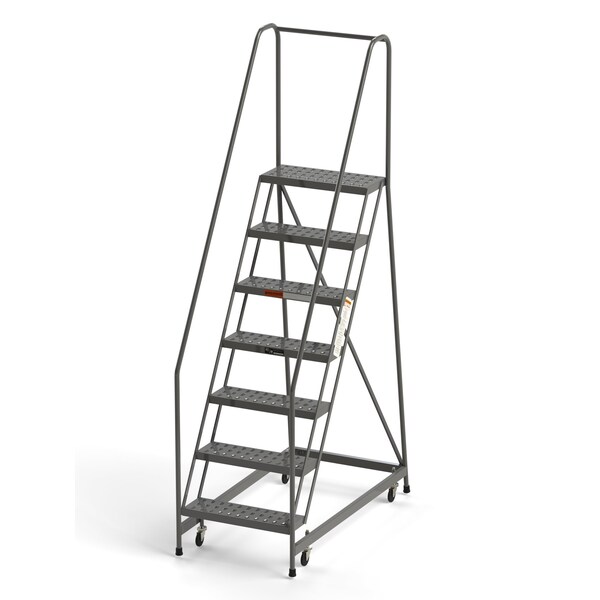 Industrial Rolling Ladder, 7 Steps, 24"W Perforated Tread, 450 lbs. Capacity