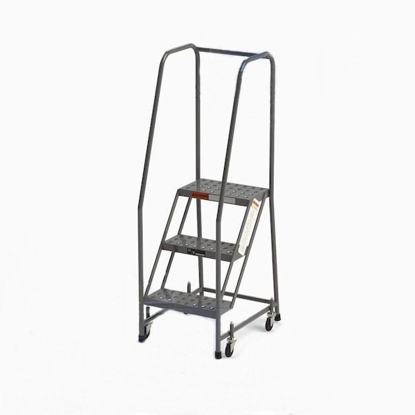 EGA's round tube enhance the strength, longevity, and durability in the face of a multitude of work conditions and difficulties. Suitable for stockroom, shop floor, and maintenance applications. EGA rolling ladders travel with ease to wherever workers need themand then lock securely in place when stood on. Industrial rolling ladders are OSHA Compliant. Steps are 7"D with the top step 9.5"D. Industrial Step Stool, 3 Steps, 16"W Perforated Tread, Handrails 450 lbs. Capacity