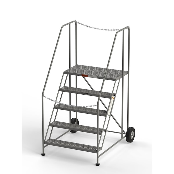 Load semi-trailers easier when forklifts are not available with an industrial semi-trailer access ladder. This rolling truck ladder has a top step height of 47.5". Steps are 36"W x 7"D, while the top step platform is 36"w x 19"D. The wheels are 10" to enable easy transport over rough surfaces. 450 lbs. capacity. OSHA compliant, this rolling ladder also features safety chain at both the top and bottom of ladder for added safety. Industrial Semi-Trailer Truck Access Ladder