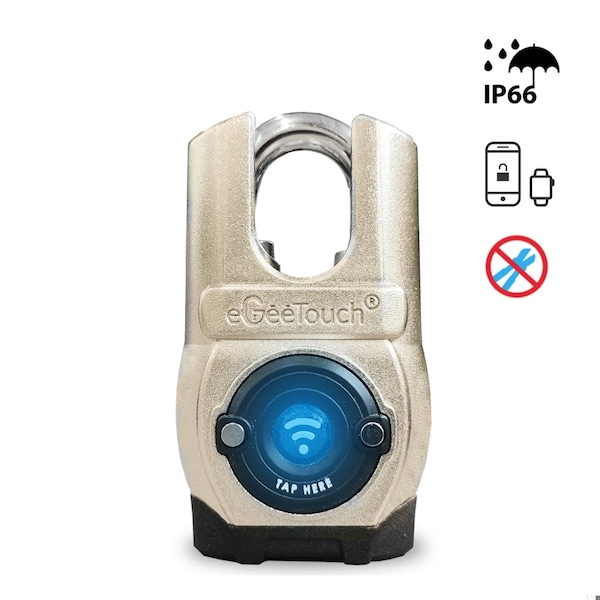 Patented eGeeTouch Anti-Cut Smart Padlock is a Robust & Rugged Design for OUTDOOR & COMMERCIAL use IP66 Waterproof & Freeze-proof features, Shackle Cutting Strength & Corrosion-resistant pass highest grade 6 ASTM salt-test.It is embedded with DUAL intelligent proximity & historical access tracing NFC, Bluetooth + Cloud-based technologies that deliver an unprecedented high level of SECURITY, TRACEABILITY & NEW functions unmatched by any regular keyed or combination padlocks.