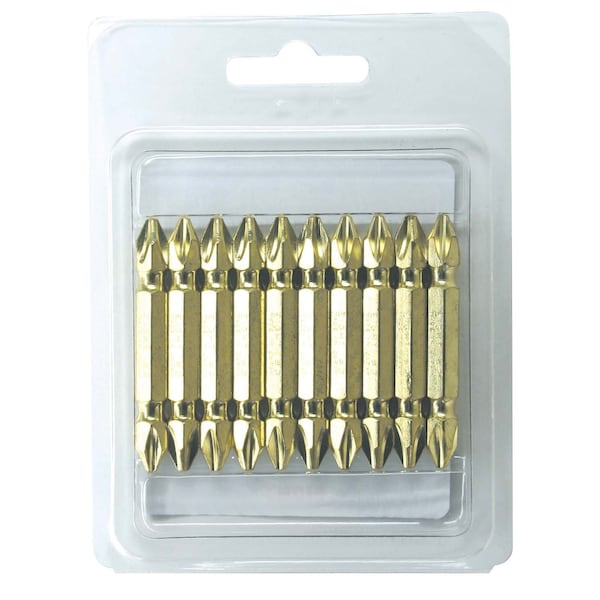 DOUBLE-END PH BIT GOLD COLOR CODED 6.35MM SHANK 9MM GROOVE, PH NO.2 x 50MM OAL, 10PK