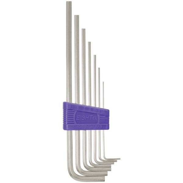 EIGHT TOOL's LHS-7 includes LH-1.5, 2, 2.5, 3, 4, 5, and 6 mm 7 pcs., Excellent Series L-shape Hex Keys Extra Long Length. Excellent series products are made of original SNCM+V material, heat treated to the point that achieves optimum balance of hardness and torsional strength, and plated with original chrome-6-free EL/ARMOUR plating.About EIGHT TOOL:EIGHT TOOL has specialized in hex key wrench manufacturing in Japan for over 60 years and has provided the world's highest-class quality tools for all industries. Made of originally-developed special alloy steel SNCM+V that incorporates the torsional strength and abrasion resistance, EIGHT TOOL's strict quality standard and 2,000+ product lines have earned recognition as a trusted brand from industry professionals all over the world. EIGHT TOOL's Excellent series features original chrome-6-free EL/ARMOUR plating that provides superior abrasion resistance and rust resistance with hexad-chrome chrome 6 free plating technology. Along with other various features including Taper Head enhanced ball end machining and Bolt Catch function etc., EIGHT TOOL's products service our customers with outstanding performance.Craftsmanship is required more than ever to support innovation. EIGHT TOOL strives to develop and manufacture reliable hand tools that could assist in improving our world, one screw at a time.