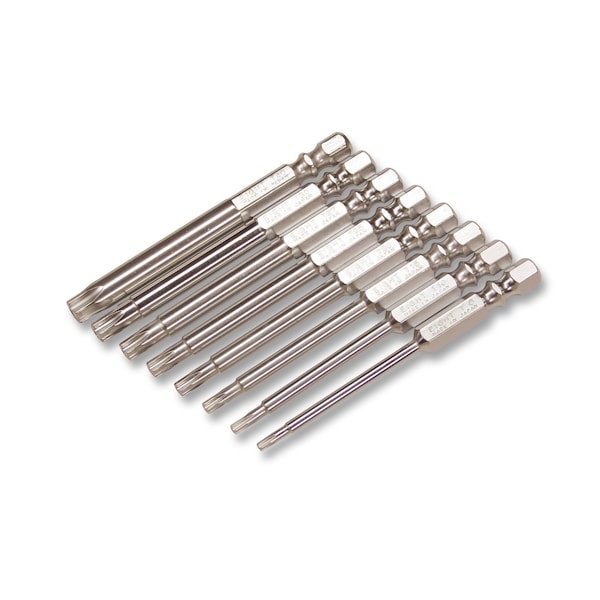 EIGHT TOOL's EA-33S series is an Excellent Series Torx Slim Type Screwdriver Bit 1/4'' Shaft. Excellent series products are made of original SNCM+V material, heat treated to the point that achieves optimum balance of hardness and torsional strength, and plated with original chrome-6-free EL/ARMOUR plating.About EIGHT TOOL:EIGHT TOOL has specialized in hex key wrench manufacturing in Japan for over 60 years and has provided the world's highest-class quality tools for all industries. Made of originally-developed special alloy steel SNCM+V that incorporates the torsional strength and abrasion resistance, EIGHT TOOL's strict quality standard and 2,000+ product lines have earned recognition as a trusted brand from industry professionals all over the world. EIGHT TOOL's Excellent series features original chrome-6-free EL/ARMOUR plating that provides superior abrasion resistance and rust resistance with hexad-chrome chrome 6 free plating technology. Along with other various features including Taper Head enhanced ball end machining and Bolt Catch function etc., EIGHT TOOL's products service our customers with outstanding performance.Craftsmanship is required more than ever to support innovation. EIGHT TOOL strives to develop and manufacture reliable hand tools that could assist in improving our world, one screw at a time.*TORX is a registered trademark of Acument Intellectual Properties, LLC. EIGHT TOOL CO., LTD. is an official licensee of Acument Intellectual Properties, LLC.