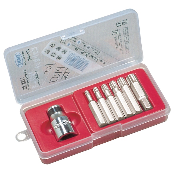EIGHT TOOL's 21XB-S6 includes 21XB-B25, 30, 40, 45, 50, and 55 6 pcs., Excellent Series Torx Bits with Changeable Socket 1/2'' Drive - Short Length. Excellent series products are made of original SNCM+V material, heat treated to the point that achieves optimum balance of hardness and torsional strength, and plated with original chrome-6-free EL/ARMOUR plating. Taper Head enhanced ball point enables final tightening by increasing the surface contact area to bolt walls. About EIGHT TOOL:EIGHT TOOL has specialized in hex key wrench manufacturing in Japan for over 60 years and has provided the world's highest-class quality tools for all industries. Made of originally-developed special alloy steel SNCM+V that incorporates the torsional strength and abrasion resistance, EIGHT TOOL's strict quality standard and 2,000+ product lines have earned recognition as a trusted brand from industry professionals all over the world. EIGHT TOOL's Excellent series features original chrome-6-free EL/ARMOUR plating that provides superior abrasion resistance and rust resistance with hexad-chrome chrome 6 free plating technology. Along with other various features including Taper Head enhanced ball end machining and Bolt Catch function etc., EIGHT TOOL's products service our customers with outstanding performance.Craftsmanship is required more than ever to support innovation. EIGHT TOOL strives to develop and manufacture reliable hand tools that could assist in improving our world, one screw at a time.*TORX is a registered trademark of Acument Intellectual Properties, LLC. EIGHT TOOL CO., LTD. is an official licensee of Acument Intellectual Properties, LLC.