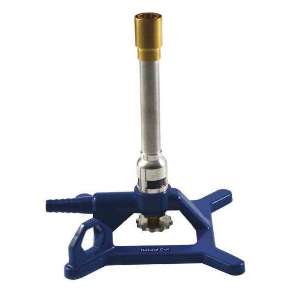 Anti-Tip Bunsen Burner, Tirrill, Natural, Btu Output 800 to 1200, Max. Temp. 1,550 Degrees C, Barb Size 8 mm, Material Cast Iron (Base), Outside Dia. 13 mm, Overall Height 6 in