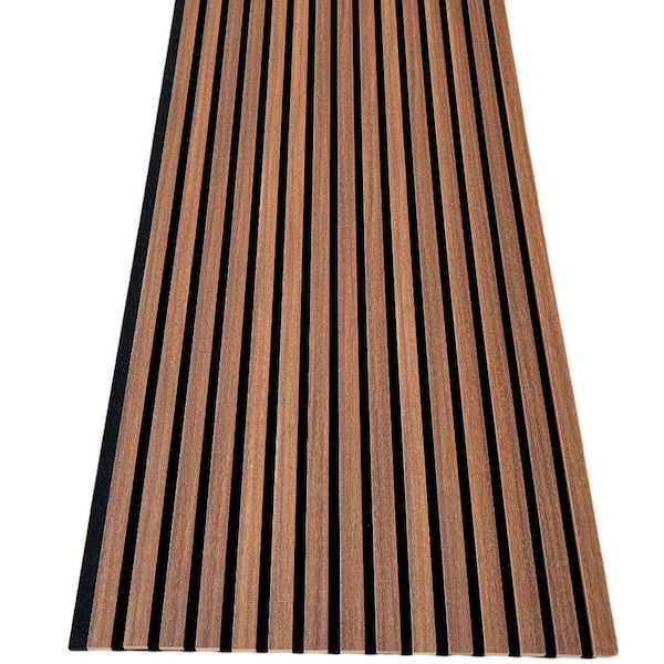 One box comes with 1 piece 94 x 23.6 x 0.8 acoustic panels. From our line of premium soundproofing panels, these antique maple acoustic slat wood paneling for soundproofing walls feature unrivaled noise canceling materials. Constructed from eco-friendly MDF, the slats are fully wrapped in heavy-duty wood veneer finish. Furthermore, the backing is made from high-density acoustical fiber which is excellent for enhancing sound quality, increasing privacy, containing unwanted noise from escaping, and many other benefits. These wall panels can be installed horizontally or vertically and can be cut to any shape. This versatility allows for personalization and endless possibilities. Not to mention, the ease of installation allows for a speedy renovation of any space.