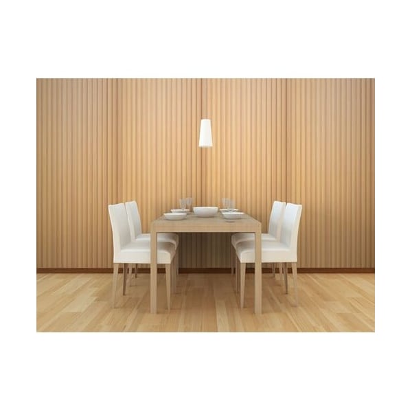 From our line of classic slat wood wall paneling, Champagne Oak Wood Slat Panels for Walls are constructed from solid wood wrapped in a heavy-duty wood veneer finish. Featuring 4 slats per plank and thick ridges for a more pronounced 3D slat effect. This is a wonderful choice for for home improvement and renovation projects that can increase the value of your home. Champagne oak wood slat panels for walls can bring a bright and natural aesthetic to interior spaces. Oak wood is known for its light color and subtle grain patterns, making it an excellent choice for creating a contemporary and inviting environment. Furthermore, light oak slat walls can make a room feel more spacious and airy by reflecting light. This is especially beneficial for smaller rooms or areas with limited natural light.