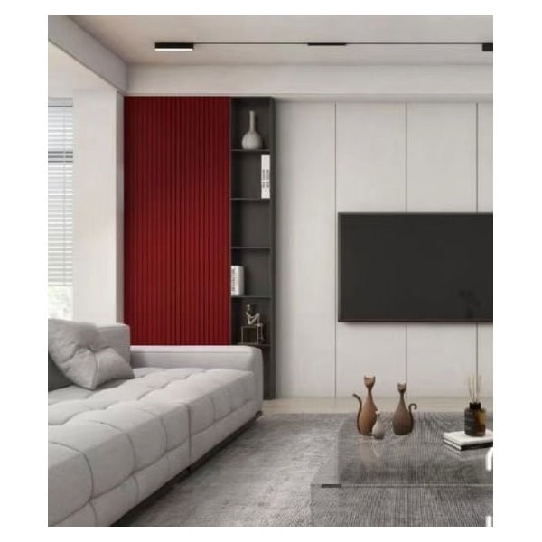 Feast your eyes on this fabulous Satin Red Slat Wood Panels for Walls. From our line of classic slat wood wall paneling, constructed from solid wood wrapped in a heavy-duty solid color veneer finish. Featuring 7 slats per plank and thin ridges for a subtle 3D slat effect. This is a wonderful choice for for home improvement and renovation projects. Satin red slat wood panels for walls can make a bold and striking statement in interior design. The use of red in slat walls can add vibrancy, energy, and personality to a space. Red can be paired with various other colors to create different accent wall effects. For a bold and high-energy look, combine red with white or black. For a more subdued and elegant appearance, consider using red with neutral tones like off-white or gray. As with any design choice, personal preference plays a significant role. Red slat walls can be a fantastic way to add drama and personality to a room, but it's essential to carefully consider the space's overall design and ambiance to achieve the desired effect.