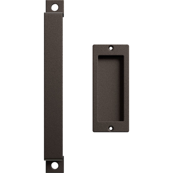 11" Pull Handle & 6" Flush Pull for 2 1/4" Doors, Bronze Texture