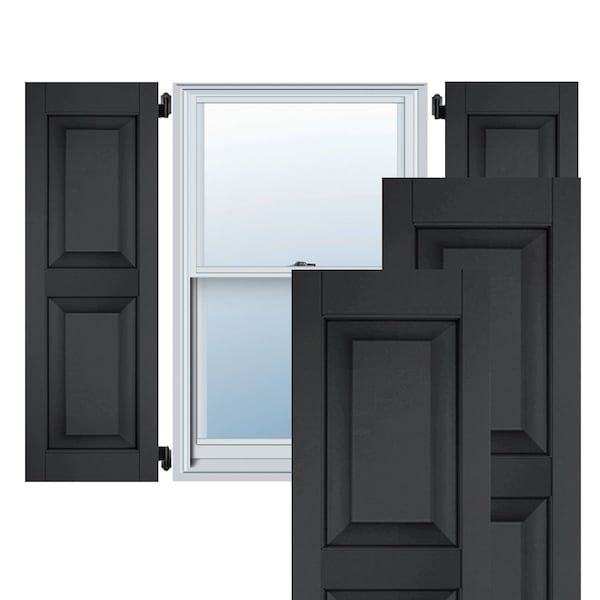 12"W x 30"H Exterior Real Wood Pine Raised Panel Shutters, Black PR