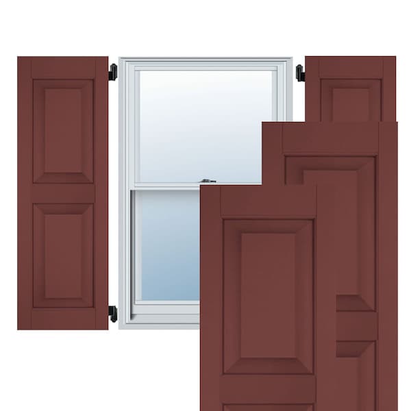 12"W x 42"H Exterior Real Wood Pine Raised Panel Shutters, Cottage Red PR