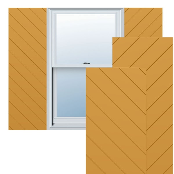 12W x 77H True Fit PVC Diagonal Slat Modern Style Fixed Mount Shutters, Turmeric, PR